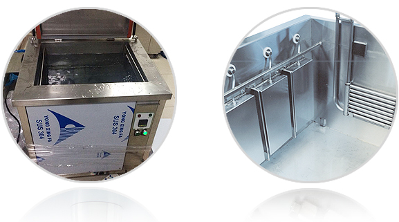 超聲波清洗槽一般采用SUS304不銹鋼手工弧焊而成,適用于普通弱酸堿性清洗液,對(duì)于有特殊要求的清洗液可以選擇使用SUS316L或者鈦板等材質(zhì).